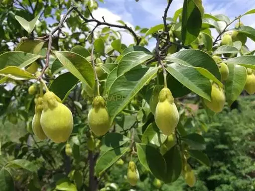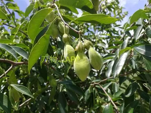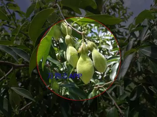 乔木,高5-15米,树皮暗灰色,几平滑,纤维坚韧;小枝圆柱形,具绉纹,幼时被疏柔毛,后逐渐脱落,无毛或近无毛。叶革质,圆形、椭圆形至长圆形,有时近倒卵形,长5-9厘米,宽2.8-6厘米,先端锐尖或急尖而具短尖头,基部宽楔形,上面暗绿色或紫绿色,光亮,下面淡绿色,两面均无毛,侧脉每边15-20,在下面更明显,小脉纤细,近平行,不明显,边缘有时被稀疏的柔毛;叶柄长约5-7毫米,被毛。花芳香,黄绿色,多朵,组成伞形花序;花梗长5-6毫米,密被黄灰色短柔毛;萼筒浅钟状,长5-6毫米,两面均密被短柔毛,5裂,裂片卵形,长4-5毫米,先端圆钝或急尖,两面被短柔毛;花瓣10,鳞片状,着生于花萼筒喉部,密被毛;雄蕊10,排成1轮,花丝长约1毫米,花药长圆形,长约4毫米;子房卵形,密被灰白色毛,2室,每室1胚珠,花柱极短或无,柱头头状。蒴果果梗短,卵球形,幼时绿色,长2-3厘米,直径约2厘米,顶端具短尖头,基部渐狭,密被黄色短柔毛,2瓣裂,2室,每室具有1种子,种子褐色,卵球形,长约1厘米,宽约5.5毫米,疏被柔毛,基部具有附属体,附属体长约1.5厘米,上端宽扁,宽约4毫米,下端成柄状。花期春夏,果期夏秋。