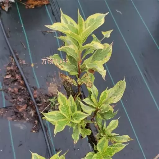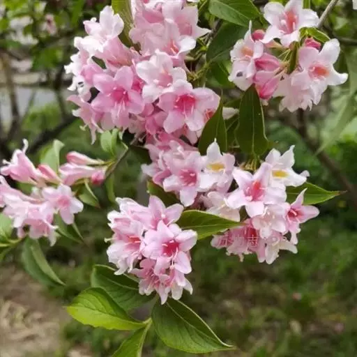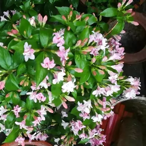 4.花叶锦带花:株高2米至3米。株丛紧密,株高1.5-2m,冠同2-2.5m,叶缘乳黄色或白色,叶对生,长卵形,叶端渐尖。聚伞花序生于枝顶,萼筒绿色,花冠喇叭状,花色由白逐渐变为粉红色,由于花开放时间不同,有白、有红,使整个植株呈现 两色花,在花叶衬托下,格外绚丽多彩。