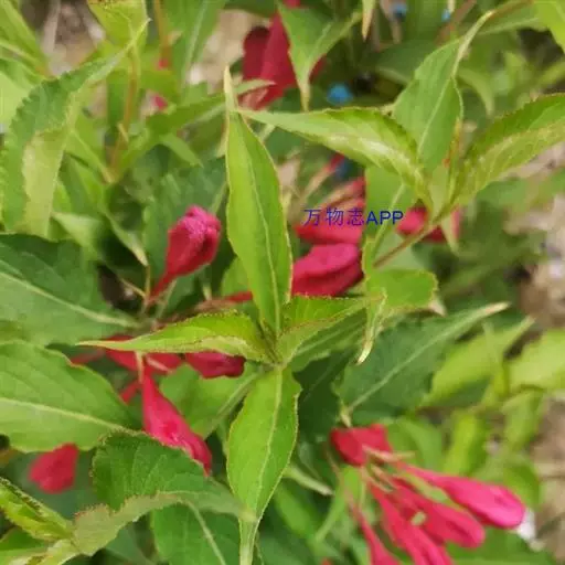 锦带花属落叶灌木,高达1-3米;幼枝稍四方形,有2列短柔毛;树皮灰色。芽顶端尖,具3-4对鳞片,常光滑。叶矩圆形、椭圆形至倒卵状椭圆形,长5-10厘米,顶端渐尖,基部阔楔形至圆形,边缘有锯齿,上面疏生短柔毛,脉上毛较密,下面密生短柔毛或绒毛,具短柄至无柄。
