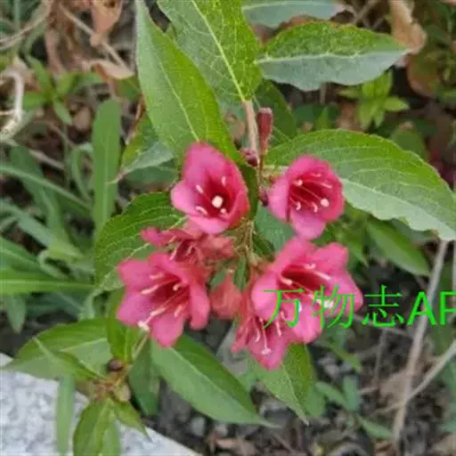 6.毛叶锦带花:与锦带花近似,重要特点是,叶两面都有柔毛;花萼裂片交款,基部合生,多毛,花冠狭钟形,中部以下突然变细,外面有毛买玫瑰红或粉红色,喉部黄色;3-5朵着生于侧生小短枝上;开花较早(4-5)月。