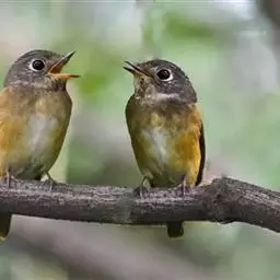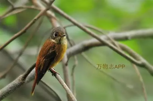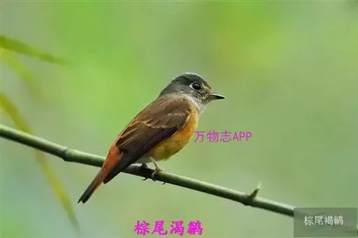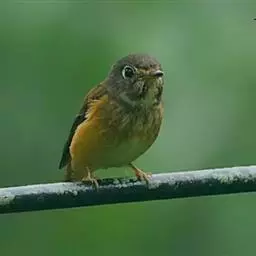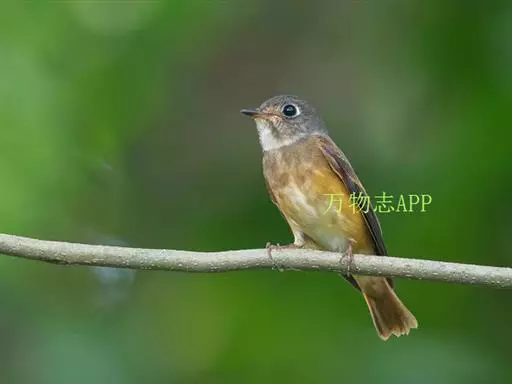 棕尾褐鹟(Muscicapa ferruginea ):体重9-16克;体长109-122毫米,是一种体型略小的红褐色鹟。眼圈皮黄,喉块白,头石板灰色,背褐,腰棕色,下体白,胸具褐色横斑,两胁及尾下覆羽棕色。通常具白色的半颈环。三级飞羽及大覆羽羽缘棕色。虹膜褐色,嘴黑色,脚灰色。