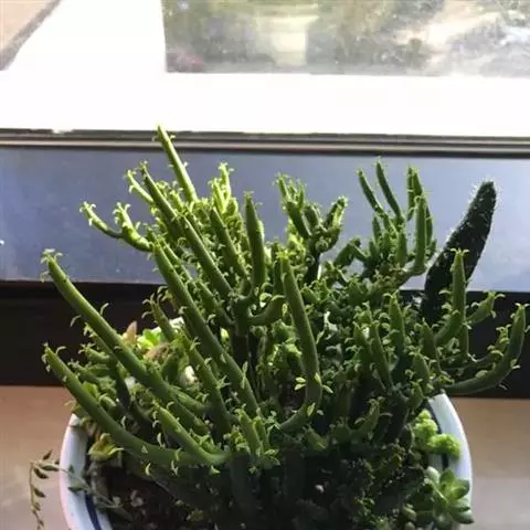 光棍树属大戟科灌木,高可达4~9米,因它的枝条碧绿,光滑,有光泽,所以人们又称它为绿玉树或绿珊瑚。光棍树的白色乳汁有剧毒,观赏或栽培时需特别小心,千万不能让乳汁进入人的口、耳、眼、鼻或伤口中,但这种有毒的乳汁却能抵抗病毒和害虫的侵袭,从而起到保护树体的作用。另据实验表明,光棍树乳汁中碳氢化合物的含量很高,是很有希望的石油植物。
