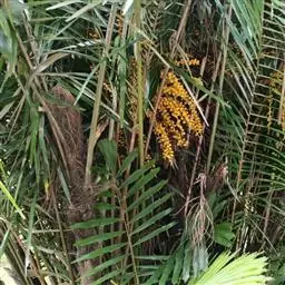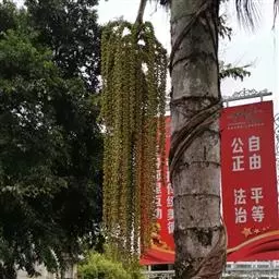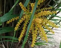 槟榔(学名:Areca catechu L.),是单子叶植物纲、初生目、棕榈科、槟榔属常绿乔木,茎直立,乔木状,高10多米,最高可达30米,有明显的环状叶痕,雌雄同株,花序多分枝,子房长圆形,果实长圆形或卵球形,种子卵形,花果期3-4月。