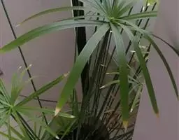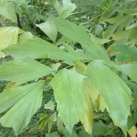 细叶棕竹,灌木,茎细如竹,多数聚生,有网状叶鞘。叶半圆形,掌状深裂,裂片狭长,阔线形,软垂,裂片7…