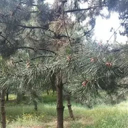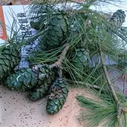 一、取材培育 人工繁殖:华山松多用种子育苗繁殖,发芽率可高达90%以上。可在9月中旬至10月中、下旬球果成熟时及时采回,先堆放5~7天,再曝晒3~4天,敲打翻动,种子脱出,及时水选,剔除空粒杂物,阴干后袋藏过冬。华山松种皮厚,发芽慢,宜早播。苗圃地选排水良好的微酸性土,整地时施足基肥。播前进行催芽处理。用冷水浸种3~7天(浸种期间要换水),浸后用消石灰拌种,待种皮裂开后,即可播种。4月中、下旬开始发芽出土,当年苗木可达8~12厘米。