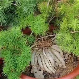 栽种:华山松上盆栽种以3月份萌芽之前最好,秋季也可栽植,但不利发根。挖取树苗时要带宿土,可剪短伸展过长的直根,剪除枯根。如栽进浅盆中,要注意树干固定,可用铁杆放盆底孔沿下,用略粗些金属丝绑在较粗根部上,从盆孔中穿出,再缠住铁杆上扎紧,可免风吹摇晃,根系松动,影响成活。栽种技术可参照黄山松。