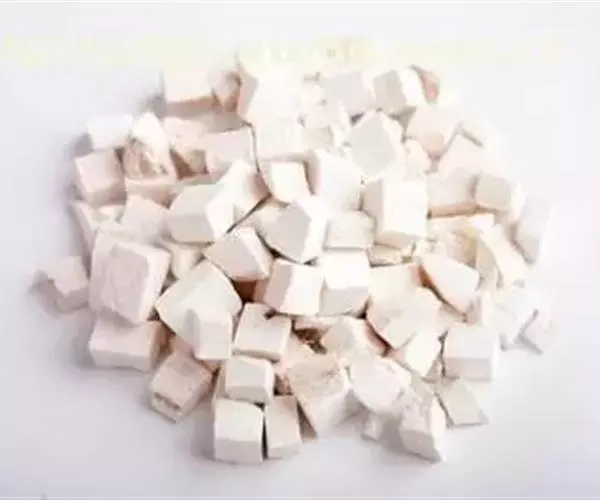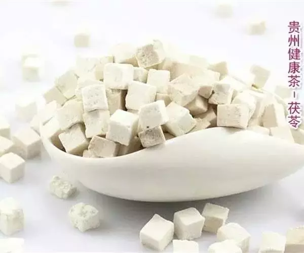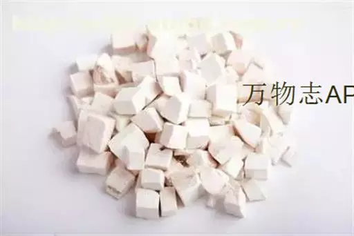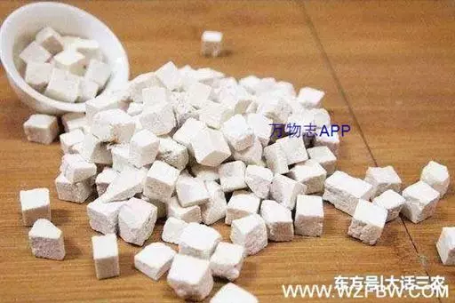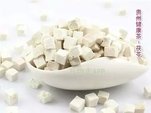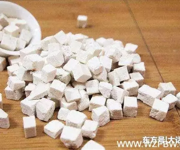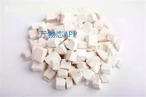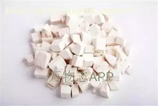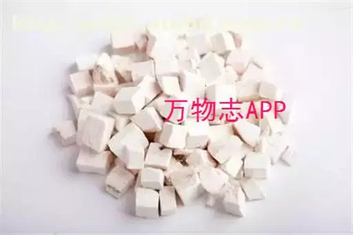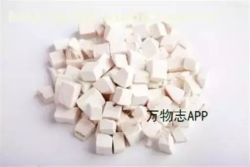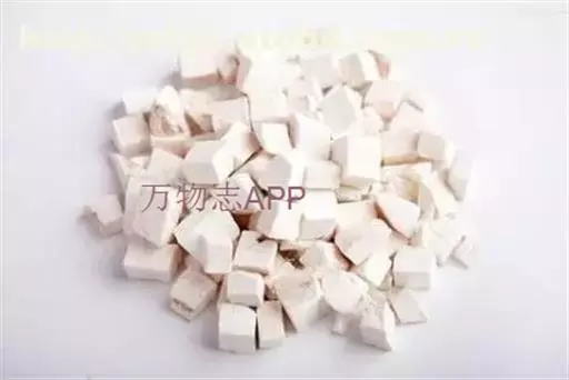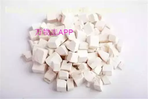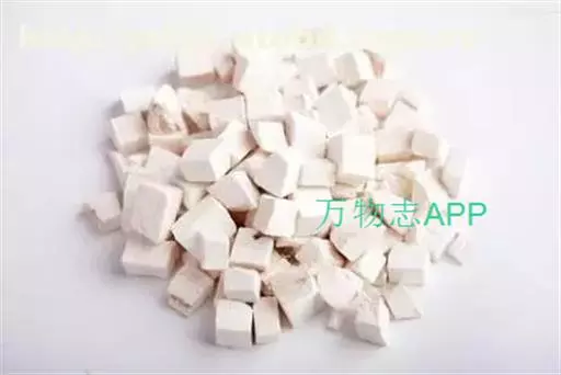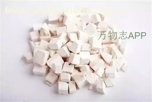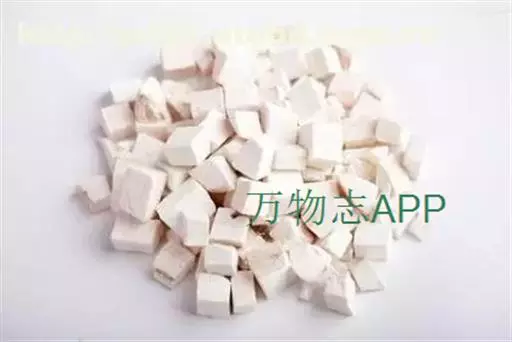 2、茯苓块:为去皮后切制的茯苓,呈立方块状或方块状厚片,大小不一。白色、淡红色或淡棕色。