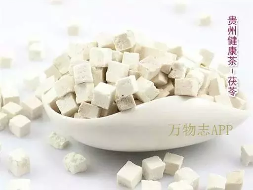茯苓,中药名。为多孔菌科真菌茯苓Poria cocos(Schw.)Wolf的干燥菌核。多于7~9月采挖,挖出后除去泥沙,堆置“发汗”后,摊开晾至表面干燥,再“发汗”,反复数次至现皱纹、内部水分大部散失后,阴干,称为“茯苓个”;或将鲜茯苓按不同部位切制,阴干,分别称为“茯苓块”和“茯苓片”。
