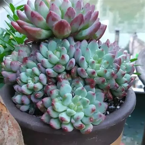 景天科风车草属的多肉植物,原产于墨西哥。株形和风车草属胧月极为相似。花瓣被蜡,叶排成延长的莲座状被…