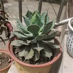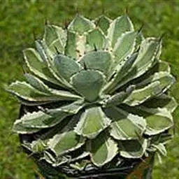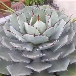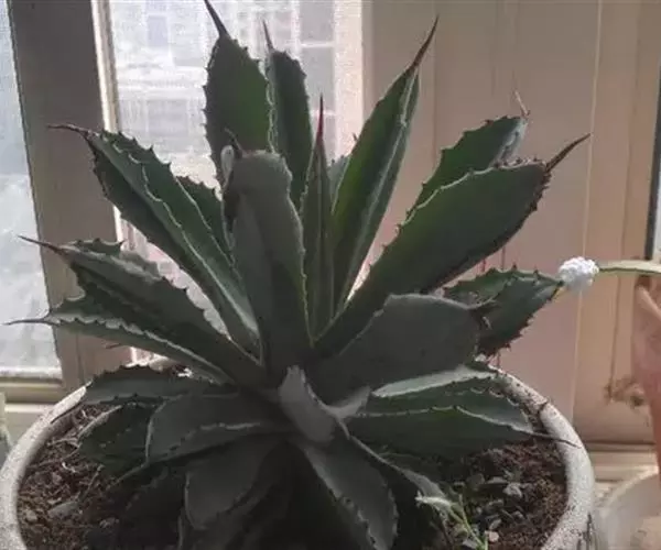 雷神又叫风雷神、戟叶龙舌兰、酒器龙舌兰、棱叶龙舌兰、怒雷神、雪龙,为龙舌兰科、龙舌兰属多年生常绿肉质草本植物。雷神的茎极短,叶丛生,呈莲座状,叶倒卵状长菱形,长7~10厘米,盆栽时叶型会变小,灰绿色,带有白粉,叶缘具明显的红褐色长针刺,以先端的针刺最长 。