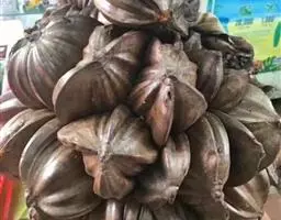 果实略为陀螺形或倒卵形,长约1.5-1.8厘米,直径0.8-1厘米,鲜时土黄色,干时紫黑色,外果皮光滑,中果皮具网状纤维。种子略为倒卵形,胚乳均匀,中央有狭长的空腔,胚侧生。花期5月,果期8月。