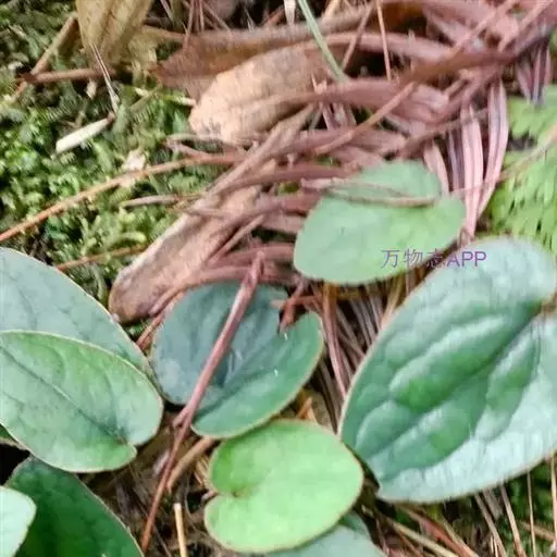 多年生草本。根状茎短或伸长,有时可离地面近2厘米,圆柱形,直或弯曲,直径1-3毫米,根颈被褐色绒毛,具簇生细长须根。茎直立,单一,不分枝,花葶状,高25-60厘米,被褐色长柔毛。叶聚生于茎的基部,莲座状或呈假轮生,叶片厚纸质,卵形、狭卵形或卵状长圆形,长2-11厘米,宽1.5-5厘米,顶端钝或中脉延伸具一小的凸尖头,基部深心形,边全缘或具疏离的胼胝体状小齿,有向上弯拱的缘毛,上面绿色,无毛或被疏毛,下面淡绿色或有时多少带紫红色,被较密的长柔毛,脉上尤甚;基出脉5条,在下面明显增粗并凸起,中脉中上部复具1-2对侧脉,网脉略明显,网眼大;叶柄长1.5-6厘米,稀更长,无翅,密被长柔毛。