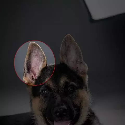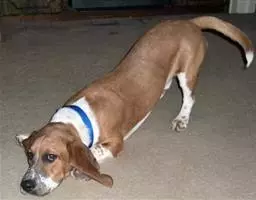 耳:耳朵中等大小,耳根高,平躺位置。下垂,三角形;耳朵警惕地倾听时,与头顶处于同一平面,使头部外观变宽。耳朵距离分的比较开,下垂,耳朵内缘紧贴头部,末端接近面颊中间。