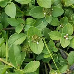 多年生匍匐小草本,近无毛。叶生于茎上部的密集,生于下部的疏离,卵形或卵状三角形,长约6毫米,宽4-8毫米,顶端短尖,基部钝或浅心形,边全缘;叶脉在叶片两面明显;叶柄纤细,长2-4毫米;托叶卵状三角形,宽1-1.5毫米,顶端里面有白色柔毛。花无梗,顶生,单朵,细小。核果球形,直径3-5毫米,成熟时红色,内有小核2颗。