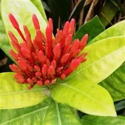 龙船花,又名山丹、卖子木、蒋英木等,是茜草科龙船花属下的一种灌木植物。全株无毛,株高0.8-2米,…