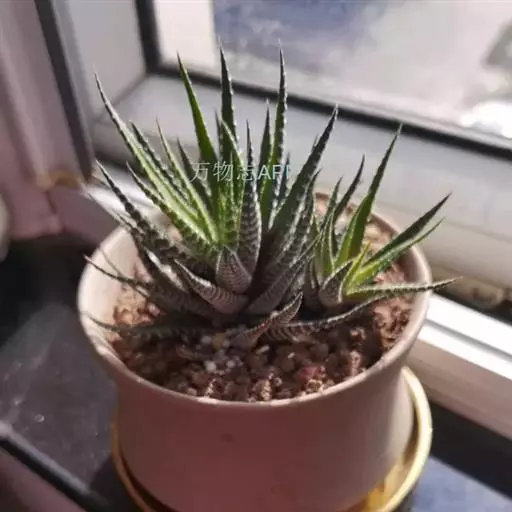 条纹十二卷是市场上常见的多肉植物,其肥厚的叶片,加上叶片上白色的星点,给人清新高雅的感觉,搭配其他多肉植物装饰家居,可让家居变得更加自然而富有生机,适合摆放在桌案、茶几、博古架等处。