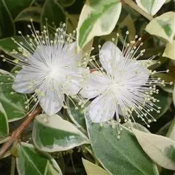 香桃木是桃金娘科香桃木属植物。枝四棱,幼嫩部分稍被腺毛;叶芳香,革质,叶片卵形至披针形;花芳香,…