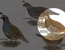 体大的灰褐色鹑类。胸灰色具黑色细纹。与相似种类四川雉鹑不同处在于栗色喉块外缘近白。有猩红色眼周裸皮。…