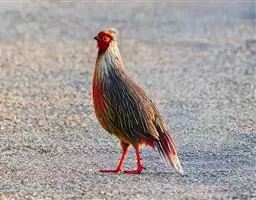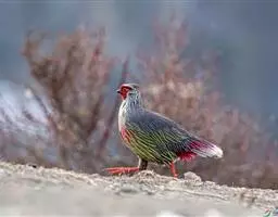 血雉雉科血雉属鸟类,别名血鸡、松花鸡,血雉的雄鸟大覆羽、尾下覆羽、尾上覆羽、脚、头侧、腊膜为红色,…