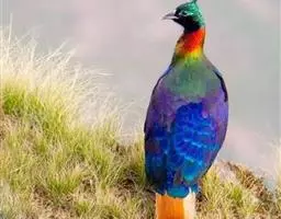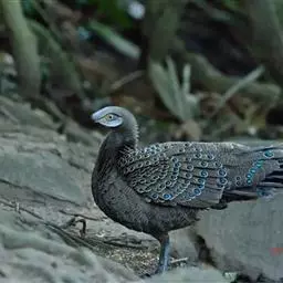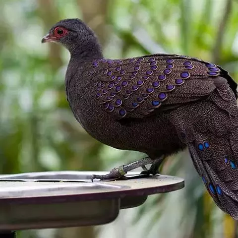 黑长尾雉大型鸡类,体长53~88厘米。雄较雌大。雄鸟通体紫蓝色,脸鲜红色,翅上有一条显著的白色翅斑…