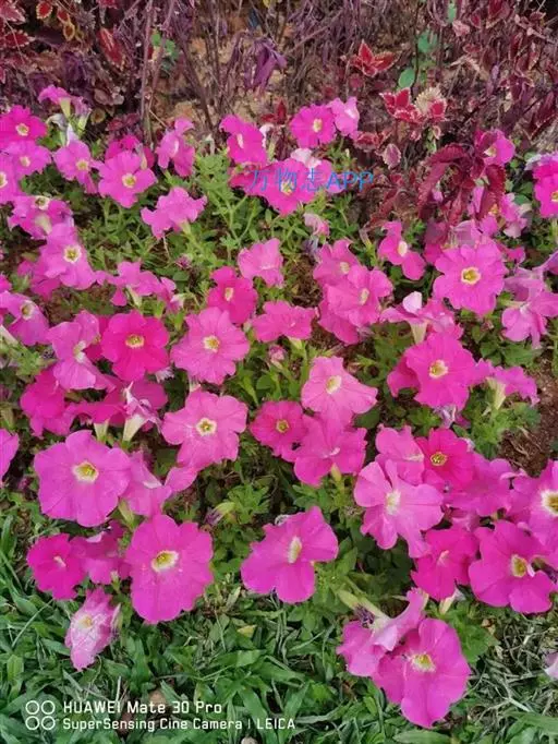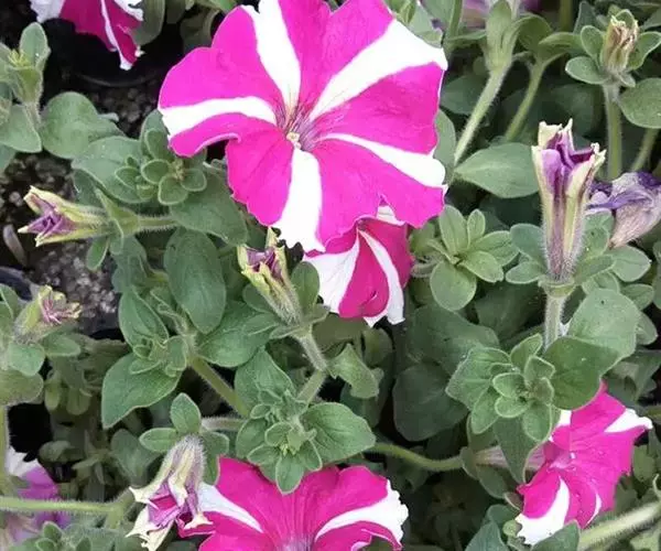 该种花朵硕大,色彩丰富,花型变化颇多,花色有白、粉、红、紫、蓝甚至黑色,以及各种彩斑镶边等色;花冠单瓣、半重瓣、瓣边褶皱状或呈不规则锯齿状。因其花色丰富,视觉效果好,群体表现出众,有着“花坛皇后”之美誉,已成为城市绿化花坛摆放的主要用花。