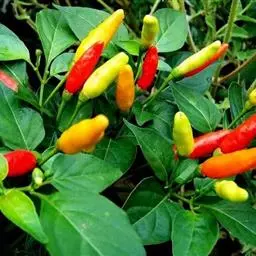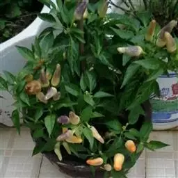 朝天椒茄科辣椒属一年或多年生草本植物;卵形;花通常单只生长于二分叉间,花梗直立,花稍俯垂,…