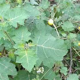 乳茄,茄科茄属直立草本植物,覆盖短的柔毛和扁平尖刺,小枝覆盖长柔毛和扁平刺,刺为蜡黄色,…