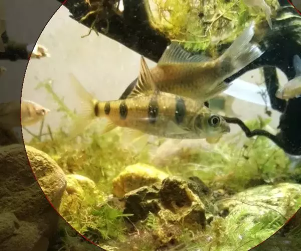 条纹小鲃,学名:Puntius semifasciolatus (Günther, 1868),鲤科小鲃属的一种鱼类。中文别名:条纹二须鲃、黄金条、五线小鲃、半间鲫 、班星鱼(广西钦州的叫法)、南瓜子(桂林叫法)、港名五线无须鲃,俗称七星鱼、红眼圈。分布在中国大陆及台湾西部各平原间的水沟或小溪。香港常见原生淡水鱼之一,但近年数量也在减少中。
