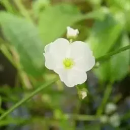 东方泽泻 块茎直径1~2厘米,或较大。叶多数;挺水叶宽披针形、椭圆形,长3.5~11.5厘米,宽1.3~6.8厘米,先端渐尖,基部近圆形或浅心形,叶脉5~7条,叶柄长3.2~34厘米,较粗壮,基部渐宽,边缘窄膜质。花葶高35~90厘米,或更高。