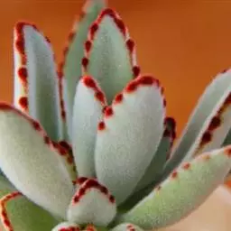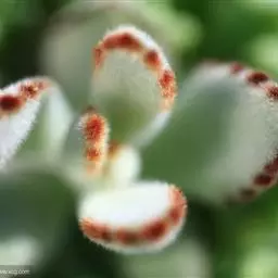 月兔耳(Kalanchoe tomentosa),正式中文名叫褐斑伽蓝,景天科伽蓝菜属,原产中美洲干燥地区及马达加斯加 。叶被绒毛,像兔子的耳朵,灰白色,间有褐色斑点,易分支,属于多肉植物中的冬型种,晚秋到早春生长旺盛。喜阳光充足的环境,阳光充足时叶尖会出现褐色斑纹。夏季要适当遮荫,不能过于荫蔽,否则会出现徒长。