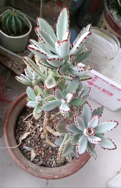 月兔耳就是养在全日照的阳光房里。生长期需保持土壤微湿,避免积水。土壤就用煤渣混合泥炭、少量珍珠岩,比例大概6:3:1。月兔耳在盆土干燥的情况下能耐零下2℃左右的低温,是室内的温度,非露天。整个冬季基本断水,5度以下就要开始慢慢断水了。