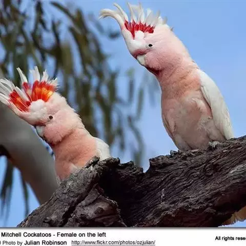 米切氏凤头鹦鹉:是鹦形目凤头鹦鹉科的鸟类。体羽白色,头上有红黄相间、色泽分明的美丽的冠羽,…