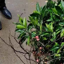 常绿灌木或小乔木。叶椭圆形,两端尖。果扁圆形,朱红色;味甜,可食。产自中国东南部,广东地区大量盆栽。
