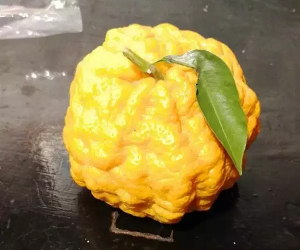 丑柑:即“丑橘”、“丑桔”,学名“不知火”,又称“凸顶柑”、“丑橙”、“丑八怪”等。不要混淆于学名“春见柑橘”(俗称“耙耙柑”)。是由日本农水省园艺试验场于1972年以清见与中野3号椪柑杂交育成。最早于2000年引入四川种植,2003年四川实现了不知火单株挂果5公斤以上,最高达15公斤,重庆,云南,江西,湖南,浙江等地也有局部种植。采用高接换种技术嫁接后,不知火杂柑在川西盆地表现为果实大,平均果重200克,最大400克以上。果实倒卵形,多有突起短颈;果皮黄橙色,10月上旬开始着色,12月上旬完全着色;果皮黄橙色,果面稍粗,易剥皮,果汁糖度在13%以上,最高达 17%,味极甜;次年2~3月成熟,风味极好。