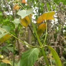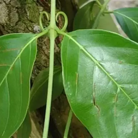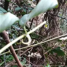 藤本,嫩枝纤细,圆柱形或略具4棱角,被硬毛。叶革质,叶柄长3-10毫米,有毛,花、果期1-12月。