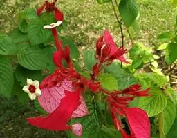 叶革质,卵形或椭圆形,长8-12厘米, 毛钩藤 宽5-7厘米,顶端渐尖,基部钝,上面稍粗糙,被稀疏硬毛,下面被稀疏或稠密糙伏毛。侧脉7-10对,下面具糙伏毛,脉腋窝陷有粘腋毛;叶柄长3-10毫米,有毛;托叶阔卵形,深2裂至少达2/3,外面被疏散长毛,内面无毛,基部有粘液毛,裂片卵形,有时具长渐尖的顶部。头状花序不计花冠直径20-25毫米,单生叶腋,总花梗具一节,苞片长10毫米,或成单聚伞状排列,总花梗腋生,长2.5-5厘米;小苞片线形至匙形;花近无梗,花萼管长2毫米,外面密被短柔毛,萼裂片线状长圆形,密被毛;花冠淡黄或淡红色,花冠管长7-10毫米,外面有短柔毛,花冠裂片长圆形,外面有密毛;花柱伸出冠喉外;柱头长圆状棒形。果序直径45-50毫米;小蒴果纺锤形,长10-13毫米,有短柔毛。