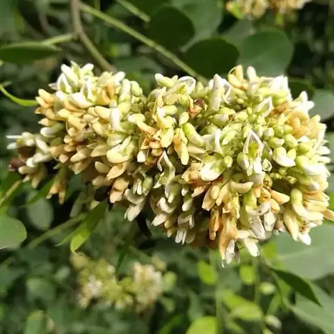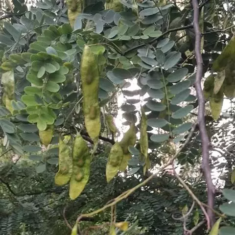 荚果长圆形或椭圆形,长3.5-6.5厘米,宽2-2.5厘米,顶端急尖或钝,果瓣革质,对种子部分有明显的网纹,有种子1(2-3)粒;种子圆肾形,扁平,长约12毫米,宽约7毫米。花期4-5月。