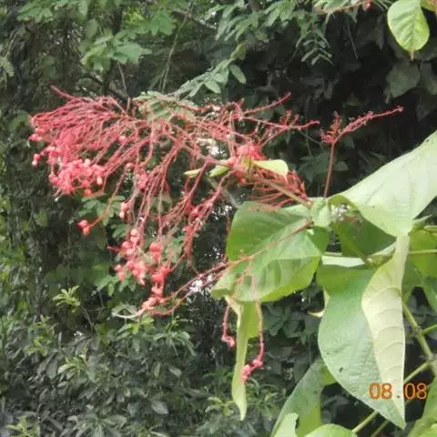 红萼龙吐珠马鞭草科大青属常绿木质藤本。叶对生,纸质,具柄,卵状椭圆形,全缘,先端渐尖,基部近圆形。…
