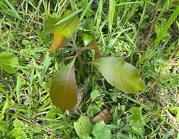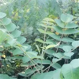 粉背黄栌叶卵圆形,较大,长3.5-10厘米,宽2.5-7.5厘米,无毛,但叶背显著被白粉;叶柄较长,…