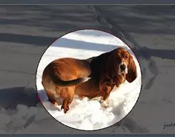尾巴:尾长,逐渐变细,夹在两后腿之间时贴于髋骨。当犬运动时,尾巴自然下垂,向上轻微弯曲,尾应不高过背部。