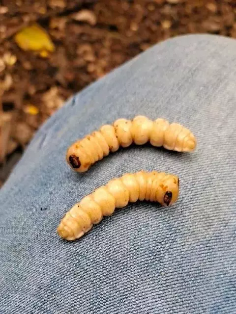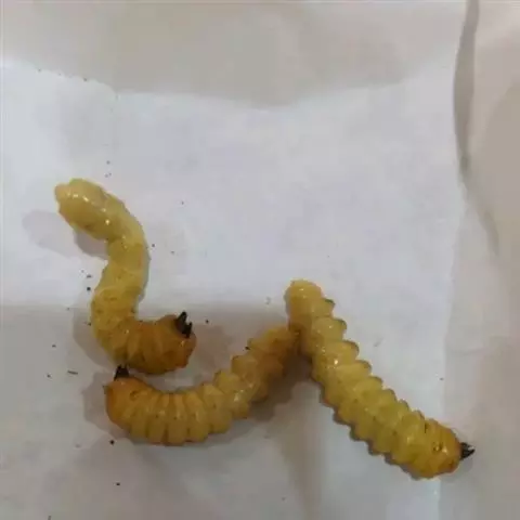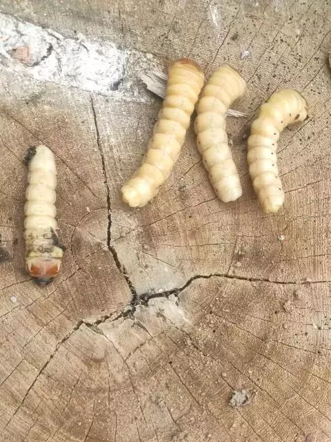 斗米虫为锈色粒肩天牛的幼虫,锈色粒肩天牛主要危害槐树Sophora japonica,…