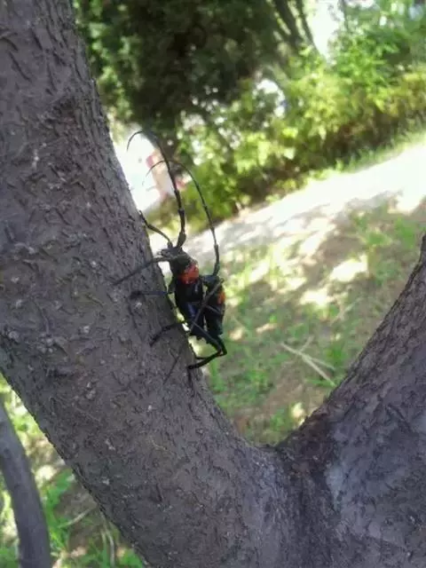 桃红颈天牛是天牛科、颈天牛属昆虫。体黑色发亮,前胸背面大部分为光亮的棕红色或完全黑色。头黑色,…