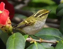 黄腹树莺:小型鸟类,体长10-11厘米。雌雄两性羽色相似。上体概暗橄榄褐色;颏、喉沾棕,…
