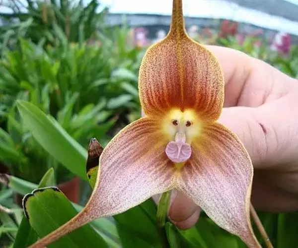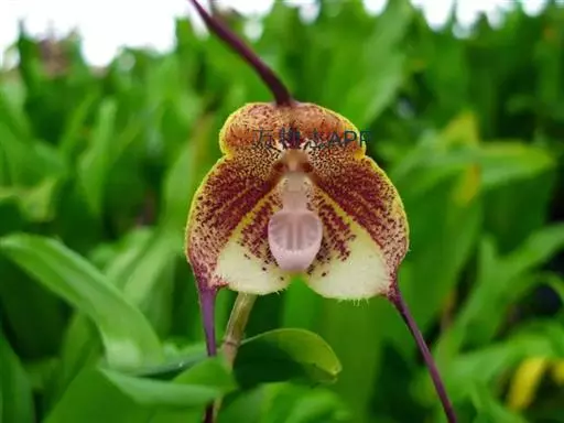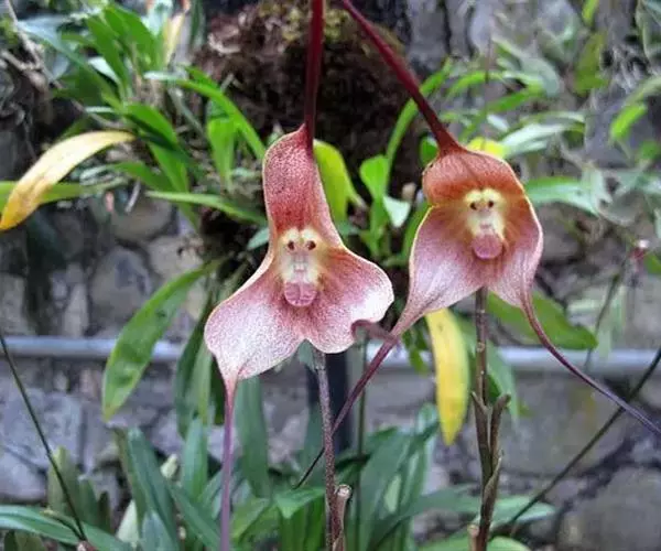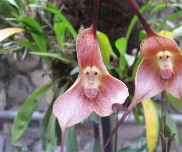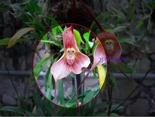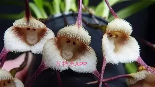 猴面小龙兰(学名:Dracula simia (Luer) Luer):兰科,小龙兰属小型附生兰,高约40厘米,茎粗壮,叶交互对生,倒卵状披针形。花对生在叶腋内,漏斗状,花梗自基部长出,种子细小。4-5月开花。