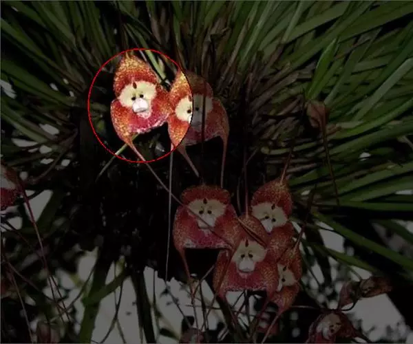猴面小龙兰的学名“Dracula”意为“小龙”,代表这种兰花的两根长刺和两个长萼片。“Simia”则代表这种兰花的一个更引人注目的怪异特征:猴脸。