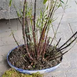 方法一 准备好兰盆及植料后,将兰株倒拿(根在上,叶在下)放于水龙头下以慢水冲洗,但水压切忌过强,以免伤兰根及叶子。用拇指和食指抓住兰头,小指抵住盆缘,用竹筷将根固定,当放入盆内时,尽量不要让根接触到盆壁。将豆粒大的混合石砾倒入盆底至三分之一处。然后倒入中粒植料至五分之四处,填实和尽量不要留下空间。将竹筷拔出,并摇实盆中植料。填实植料后,再用大粒植料埴入至距盆缘1.5厘米处。最后再倒入豆粒大植料,以将假鳞茎全部埋入土中为度,然后充分摇实。用压土工具轻压植料,并将表面弄平。种植完毕后,植料在盆中以中央稍高为好。