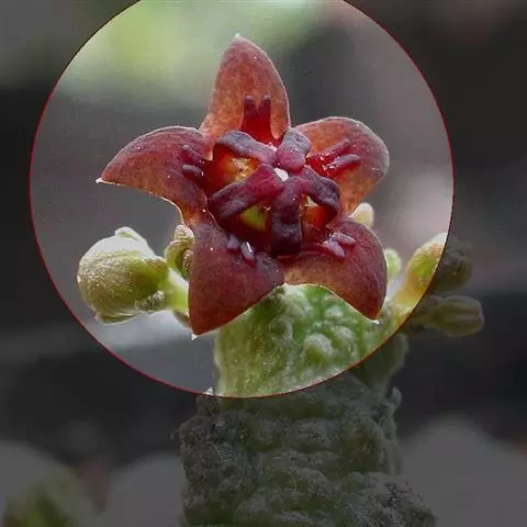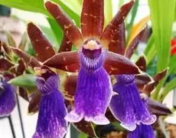 花葶长达1米,下部具数枚筒状鞘;总状花序短,具约10朵花;花苞片紫色,卵形,长约2厘米,向下反卷;花梗和子房紫色,比花苞片长;花紫色;中萼片卵形,凹陷,长1.5-1.7厘米,宽9毫米,先端锐尖;侧萼片斜卵形,与中萼片等大。