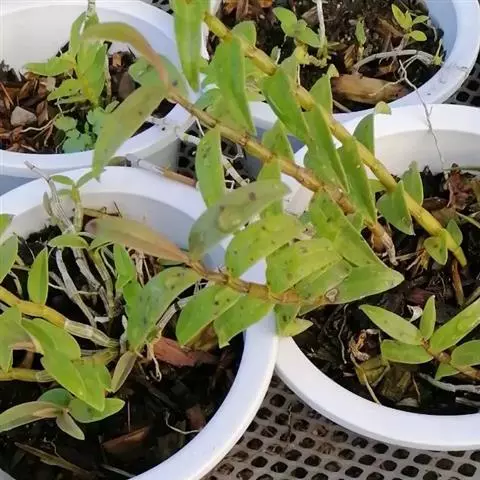 通常选用四壁多孔的塑料或陶瓷花盆,用碳根、泥炭藓、树皮块、木炭块等作盆栽材料。根据兰苗的大小,选择不同规格的花盆,但不宜用大盆栽小苗口上述栽好材料在使用前必需在清水中浸泡1天以上备用。盆底要多垫大瓦片或碎砖块,深度至盆底约1/3处,然后将兰苗放于盆中央,并在一旁插一细竹竿以固定兰苗,再填入其他栽培材料,注意根与根之间用材料隔开。
