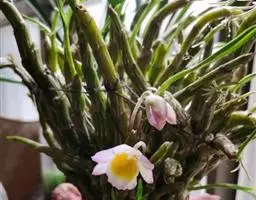 美花石斛是兰科石斛属多年生草本。茎柔弱,斜立或下垂,呈细圆柱形,有时分枝;叶互生于茎上,…