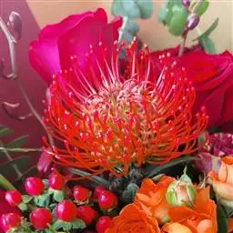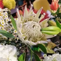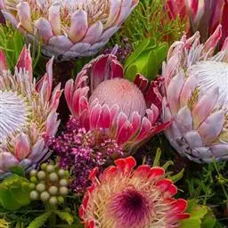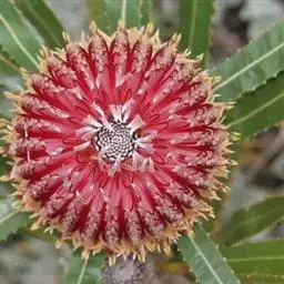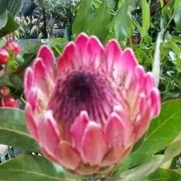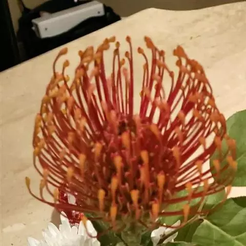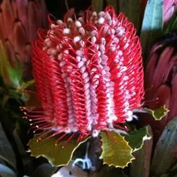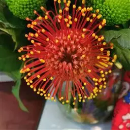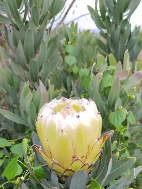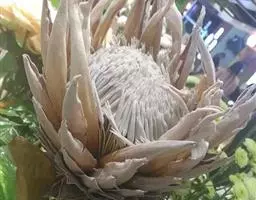帝王花,山龙眼科帝王花属多年生常绿灌木植;茎干粗壮,叶色翠绿光亮;花朵呈圆球状;其苞片有的完全打开,…